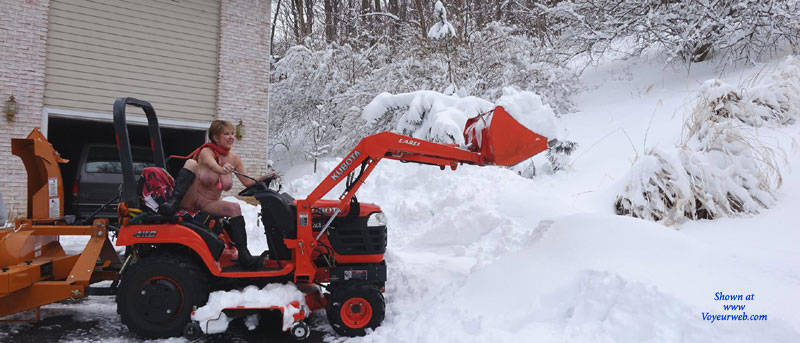 Good Wife Plows The Snow In The Nude